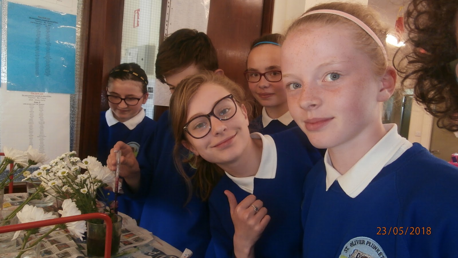 We learned about pollination in Science. We drew and labelled the parts of a flower. We learned what the function of each part of the flower is. We learned that the roots and stem transport nutrients up to the leaf. Photosynthesis takes place in the leaf. The nutrients are transported up the stem by an action called capillary action. We did an experiment to demonstrate how the nutrients are transported up the stem. We put white flowers in a glass of water. We used pipettes to add food colouring to the water. Watch this space!